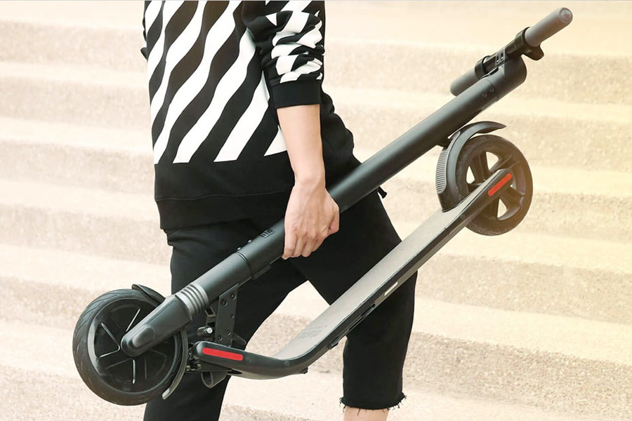 Učinkovit način prevoza. Z električnim skirojem Ninebot by Segway ES4 lahko potujete s hitrostjo do 30 km/h in z enim polnjenjem lahko naredite do 45 km poti.Za daljše razdalje lahko preprosto vključite tempomat in hitrost bo konstantna. Zahvaljujoč enostavnemu sistemu, lahko električni skiro hitro zložite in pospravite v avtodom.