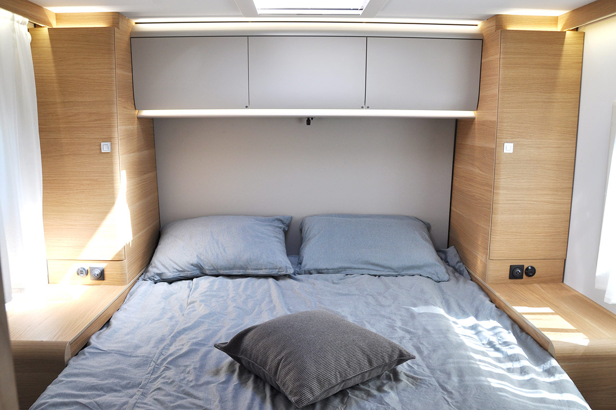 5 ležišč, Queen's bed – zakonska otočna postelja zadaj, 5 homologiranih sedežev in ogromna ogrevana garaža. Najraje ga imajo družine in avanturistični popotniki, ki si želijo več. Moderno zasnovan, izjemno udoben, aerodinamičen, polintegriran zimski avtodom (leto izdelave 2022), el. postelja se spusti s stropa. Ločena WC in tuš ter z vrati ločena prostora v bivalnem delu. Bogato opremljen in z možnostjo izbire veliko dodatne kamp in športne opreme.