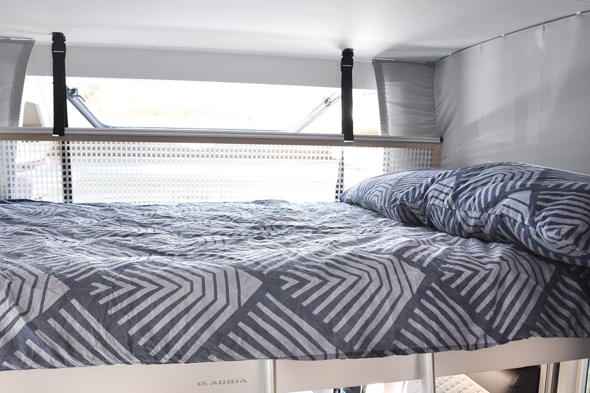 - Zakonska otočna postelja zadaj (155 cm x 195 cm)