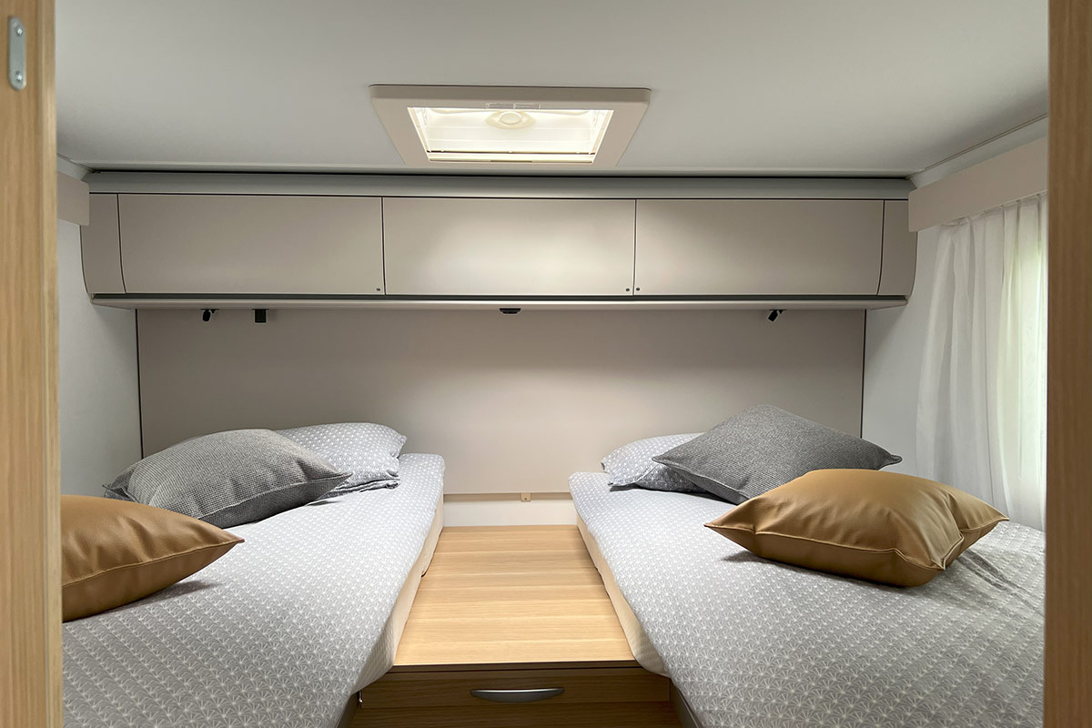 6 ležišč, maxi zakonska postelja zadaj, 5 homologiranih sedežev in ogromna ogrevana garaža. Najraje ga imajo družine in avanturistični popotniki. Moderno zasnovan, izjemno udoben, aerodinamičen, polintegriran zimski avtodom (leto izdelave 2023). Maxi zakonska postelja zadaj in električna postelja, ki se spusti s stropa. Ločena WC in tuš ter z vrati ločena prostora v bivalnem delu. Bogato opremljen in z možnostjo izbire veliko dodatne kamp in športne opreme.