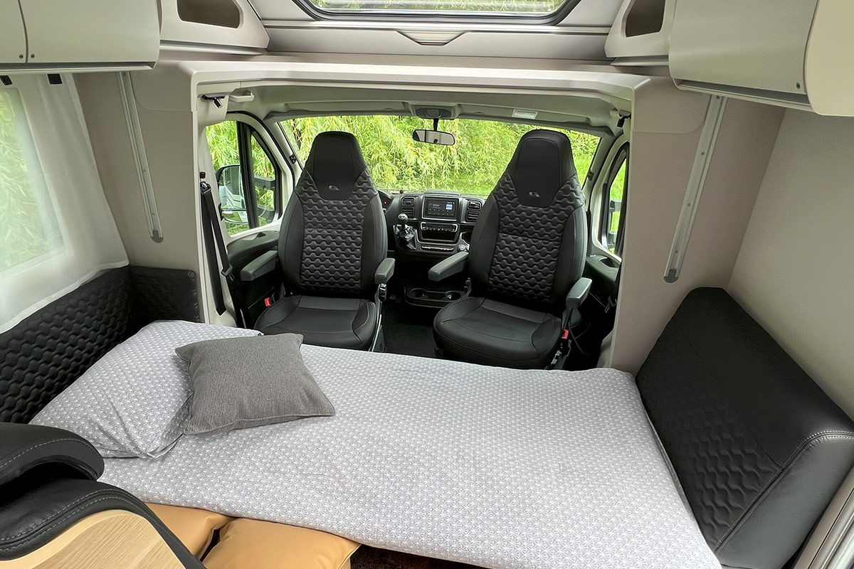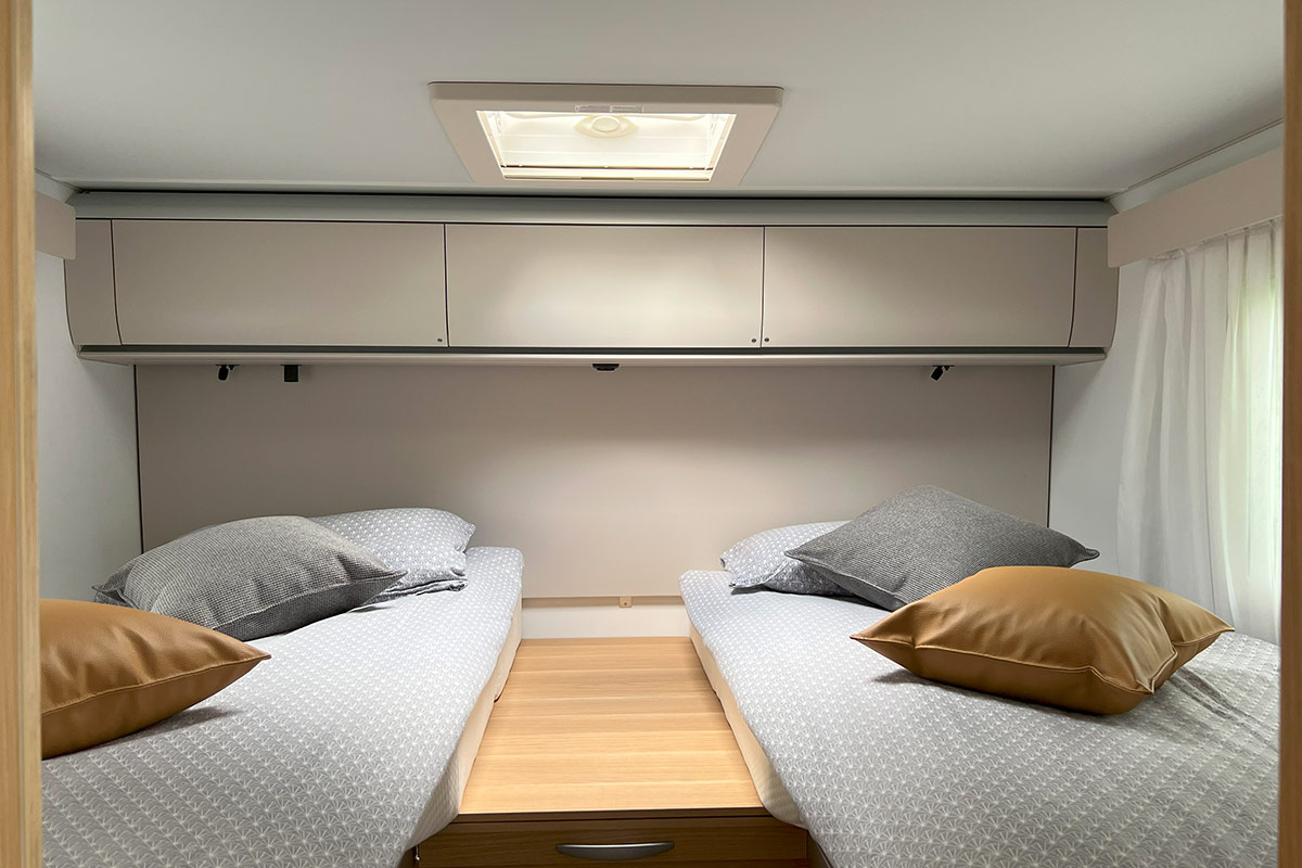 6 ležišč, maxi zakonska postelja zadaj, 5 homologiranih sedežev in ogromna ogrevana garaža. Najraje ga imajo družine in avanturistični popotniki. Moderno zasnovan, izjemno udoben, aerodinamičen, polintegriran zimski avtodom (leto izdelave 2023). Maxi zakonska postelja zadaj in električna postelja, ki se spusti s stropa.. Ločena WC in tuš ter z vrati ločena prostora v bivalnem delu. Bogato opremljen in z možnostjo izbire veliko dodatne kamp in športne opreme.