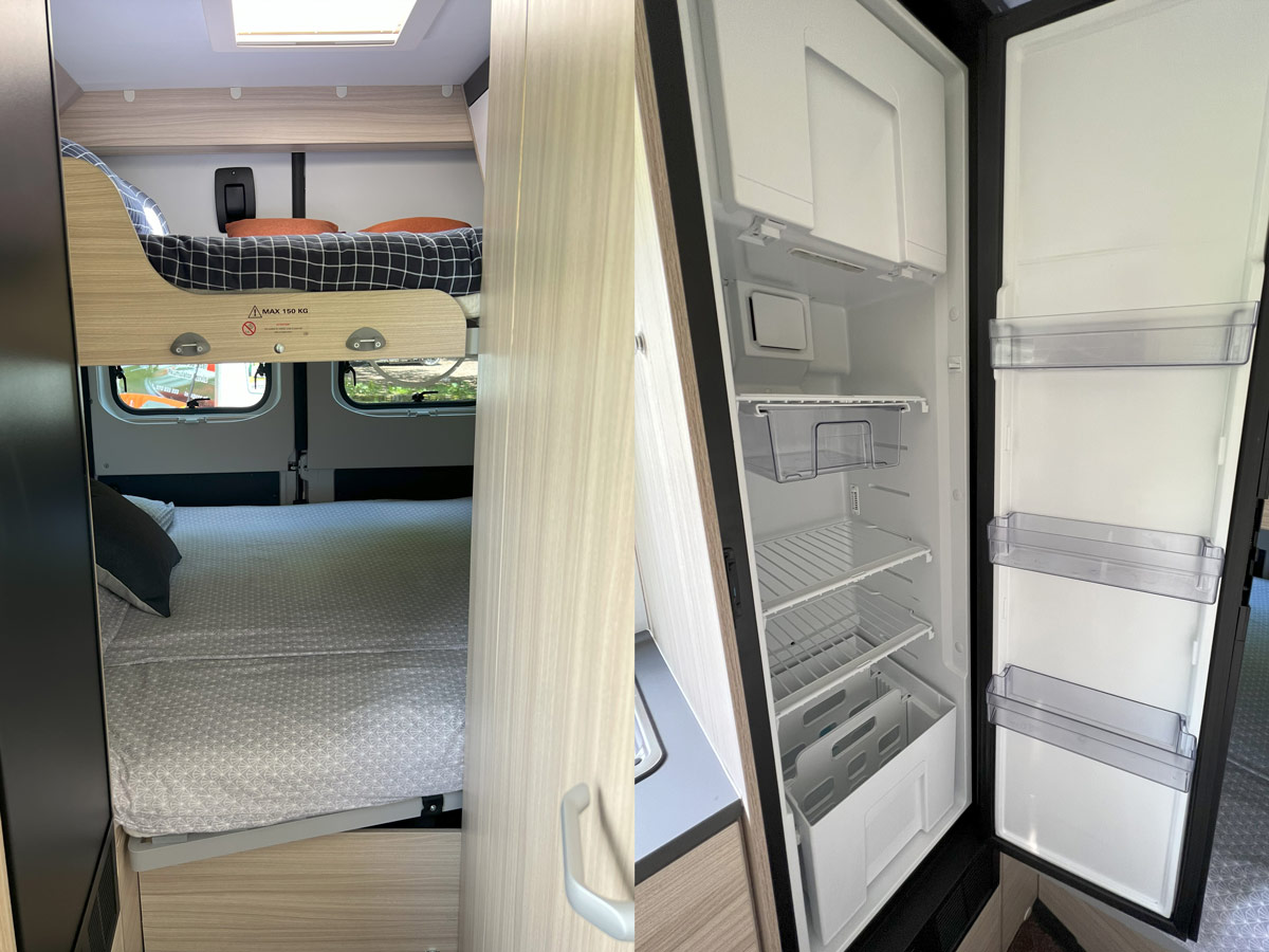 Popolnoma nov (leto izdelave 2023). Izdelan v Adria Mobil - Novo Mesto. Izjemno okreten, sodobno zasnovan Van avtodom.. 4 ležišča, Francoska zakonska postelja(145cm x 195) in pograd(130cm x 185cm). 4 homologirani sedeži z Isofix pritrdišči zadaj. Primeren za pare, družine in ostale avanturiste. Bogato serijsko opremljen in z možnostjo izbire veliko dodatne kamp in športne opreme.