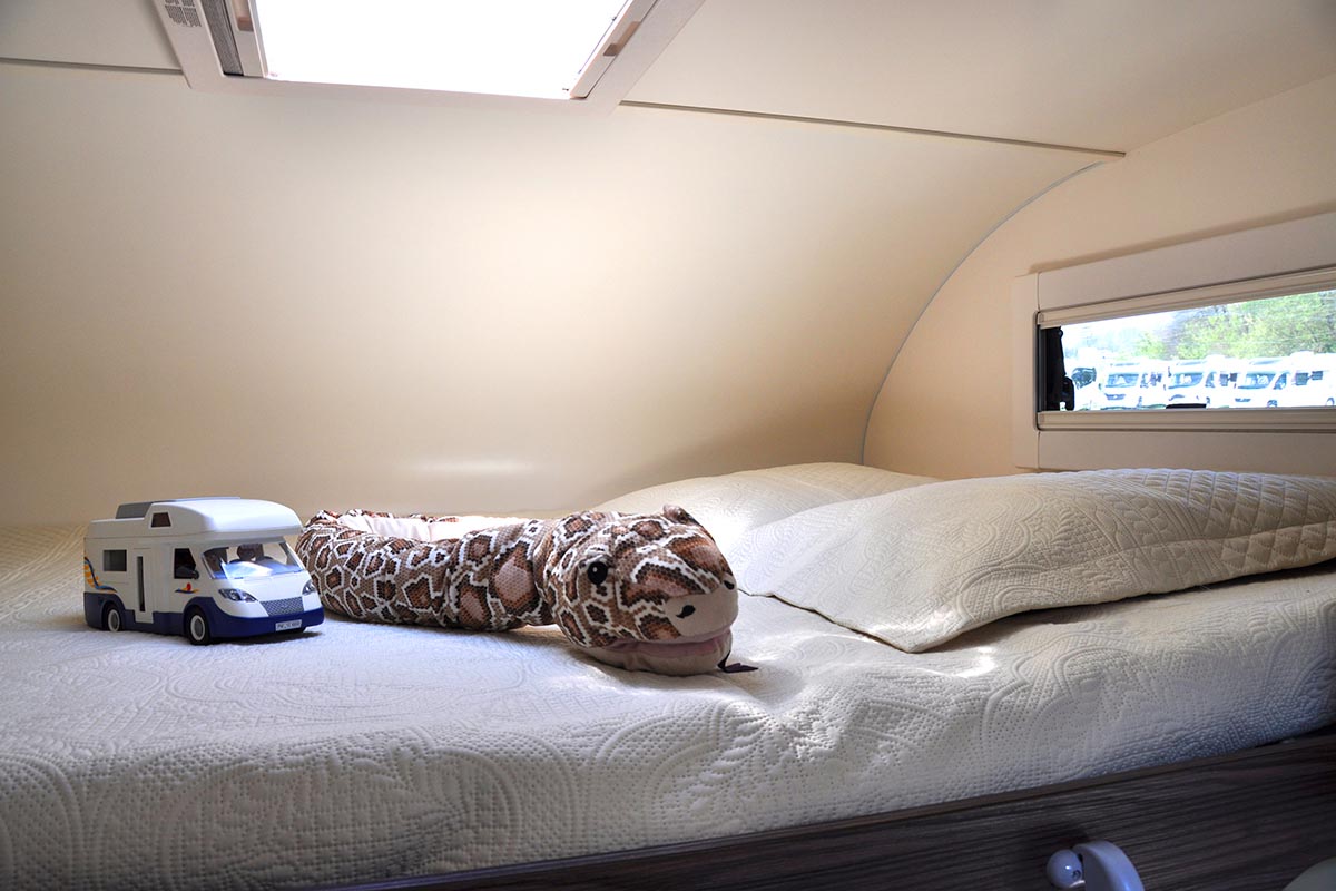 6 ležišč, 2 veliki fiksni postelji, 6 homologiranih sedežev in ogromna nastavljiva ter ogrevana garaža. Primeren tako za družine kot tudi za vse, ki potrebujejo veliko prostora. Novejše izdelave in predelan (leto izdelave 2019), moderno zasnovan, udoben (ALKOVEN) mansarden in zimski avtodom. Bogato opremljen in z veliko izbiro dodatne kamp in športne opreme.