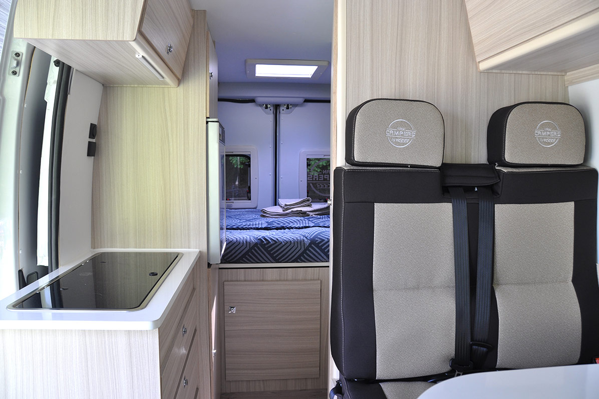Popolnoma nov (leto izdelave 2022). Izjemno okreten, moderno zasnovan, predelan kombi v avtodom. 3 ležišča, velika zakonska postelja, 4 homologirani sedeži. Primeren za pare in male družine. Bogato serijsko opremljen in z možnostjo izbire veliko dodatne kamp in športne opreme.