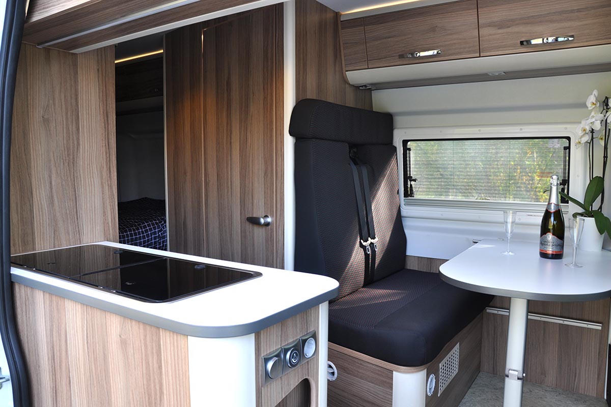 Ugoden najem avtodoma Van 600. Najnovejši in modern zimski avtodom za 2+2 osebe. Polno serijsko in bogato dodatno opremljen brez doplačil. Bivalna klima, vlečna kljuka, nosilci za kolesa, tenda,solarni sistem,...
