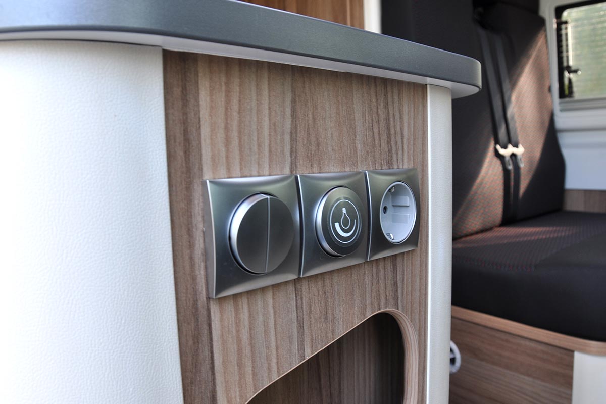 Razsmernik-Inverter 12V-220V z vgrajeno baterijo Elektronska naprava, ki pretvori enosmerni električni tok (DC) v izmeničnega (AC). Ko avtodom ni priklopljen na elektriko si napolnite vaše elektronske naprave preko razsmernika, ki ima vgrajeno baterijo, kar pomeni, da imate vaš »power bank« vedno pri roki.